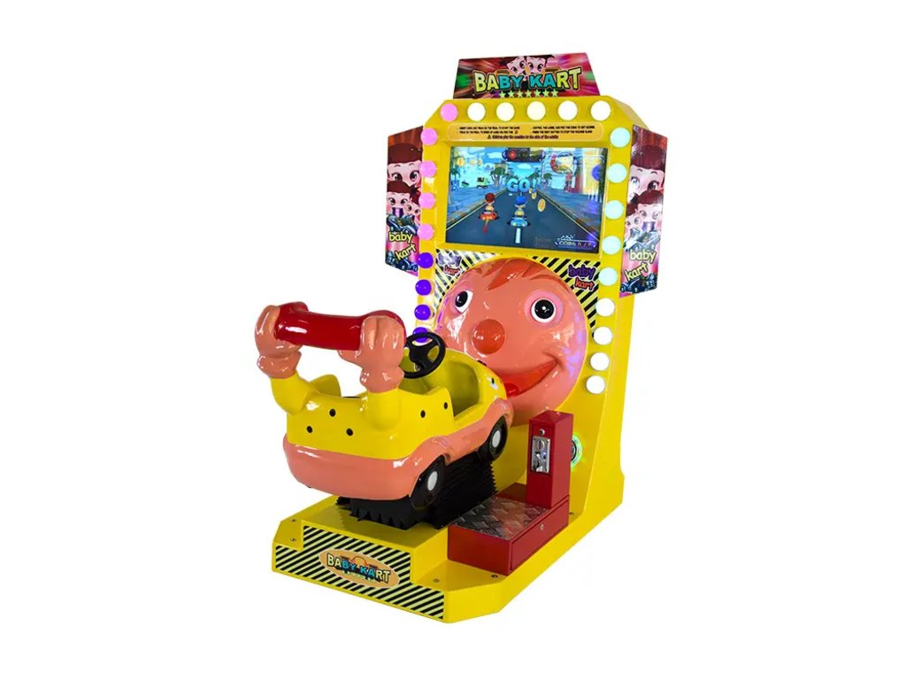 Baby Kart je bazárový detský pretekársky arkádový automat, ideálny pre herne, rodinné zábavné centrá a detské kútiky. Tento model je plne funkčný, starostlivo skontrolovaný a dostupný za zvýhodnenú cenu oproti novému zariadeniu.