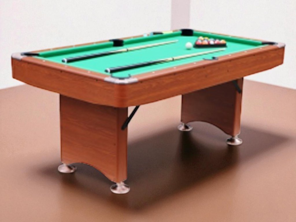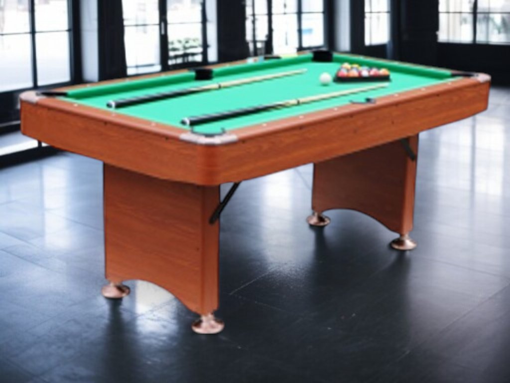 Skladací biliardový stôl s dĺžkou 6 stôp, vyrobený z MDF s PVC laminátom, skladacími nohami pre ušetrenie miesta.