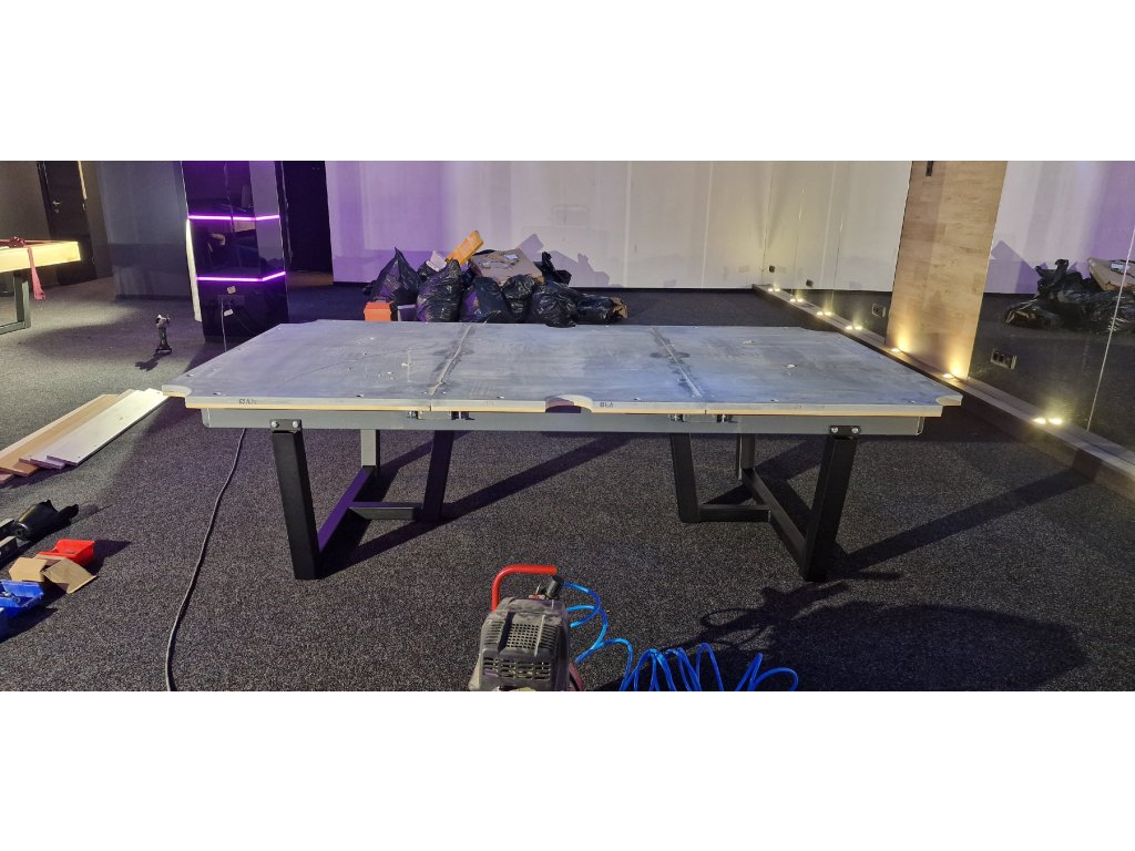 - Hrací povrch tvorí kvalitná bridlicová doska s hrúbkou minimálne 20 mm (prípadne hrubšia na požiadanie), ktorá je osadená na pevnej oceľovej zvarenej konštrukcii pre maximálnu stabilitu.