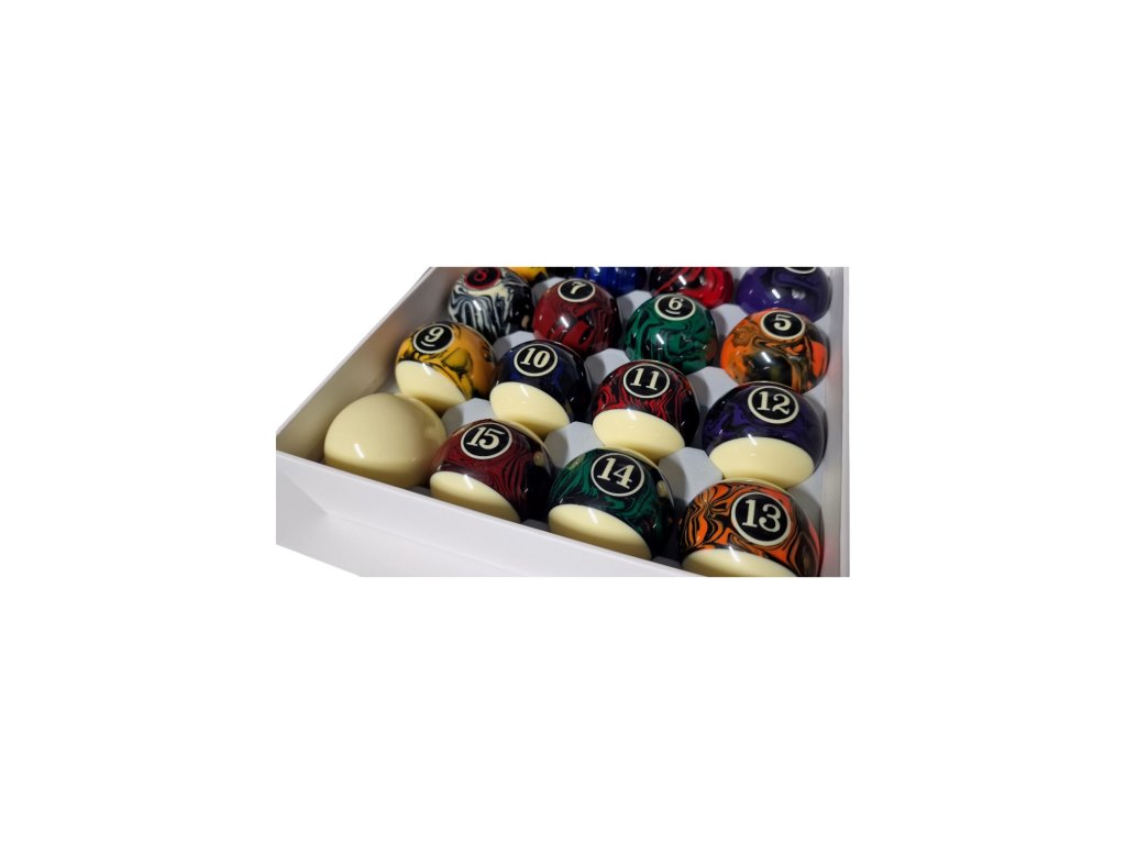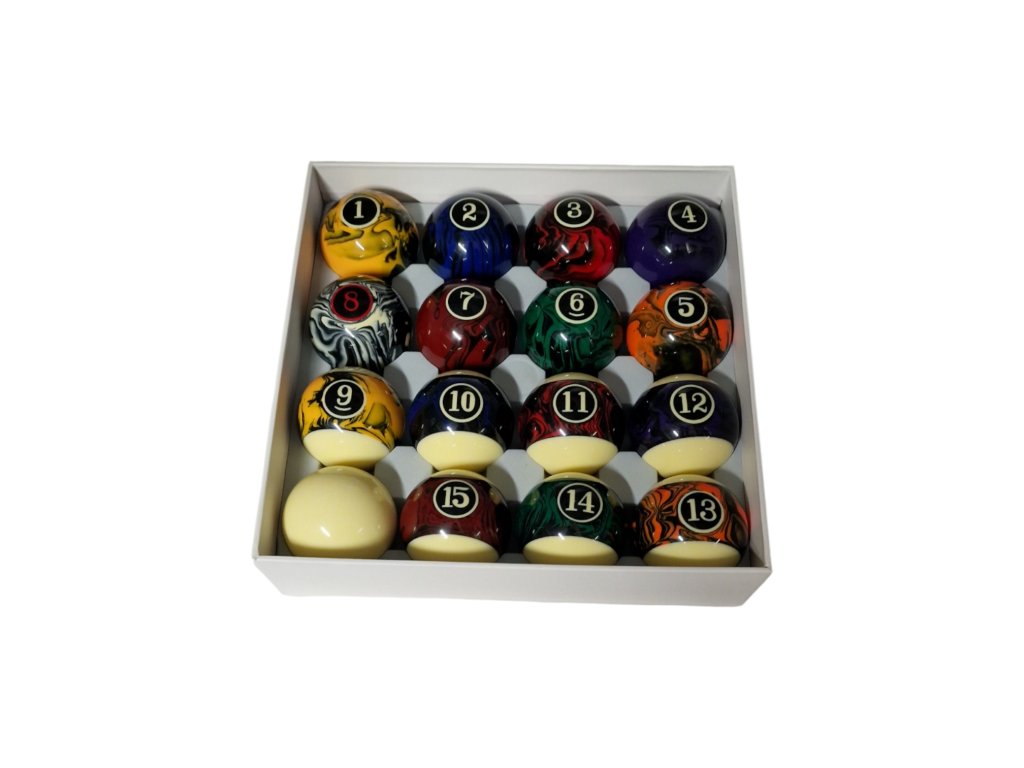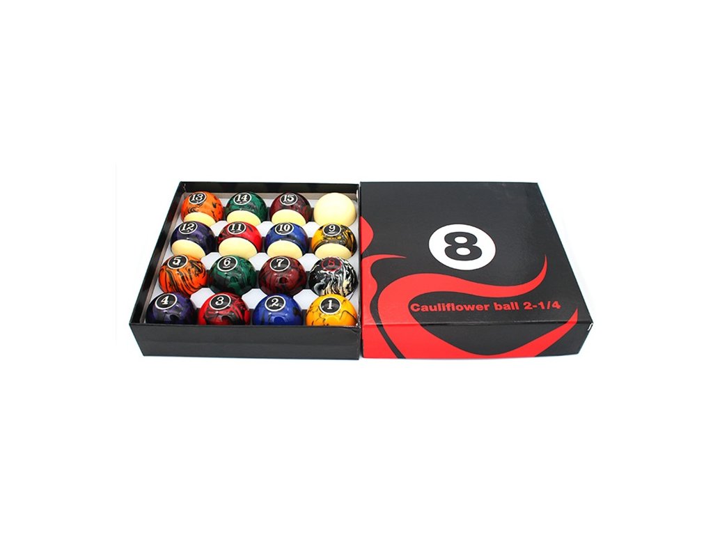 Dizajnová sada biliardových gúľ Cavaro Fantasy No.8 (Cauliflower) s priemerom 57,2 mm a hmotnosťou 172 g na guľu. Štýlové prevedenie pre hráčov, ktorí chcú vyniknúť aj pri hre amerického poolu.