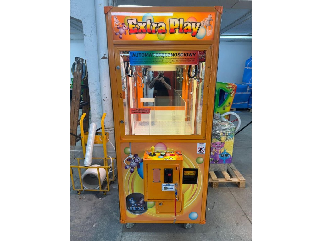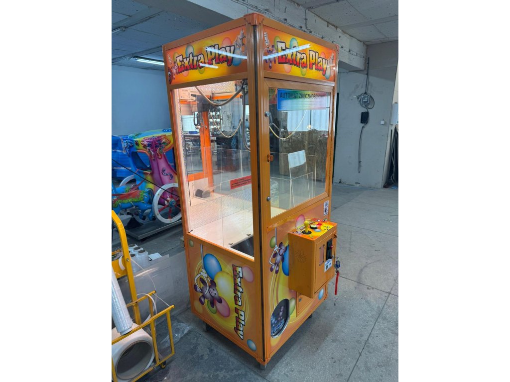 Extra Play Claw Machine je použitý/bazárový výherný automat typu „claw machine“ s dvomi rôznymi uchopovacími ramenami – jedno určené na plyšové hračky a druhé na sladkosti. Tento kus je plne funkčný, preverený a ponúkaný za výhodnú cenu oproti novému modelu.