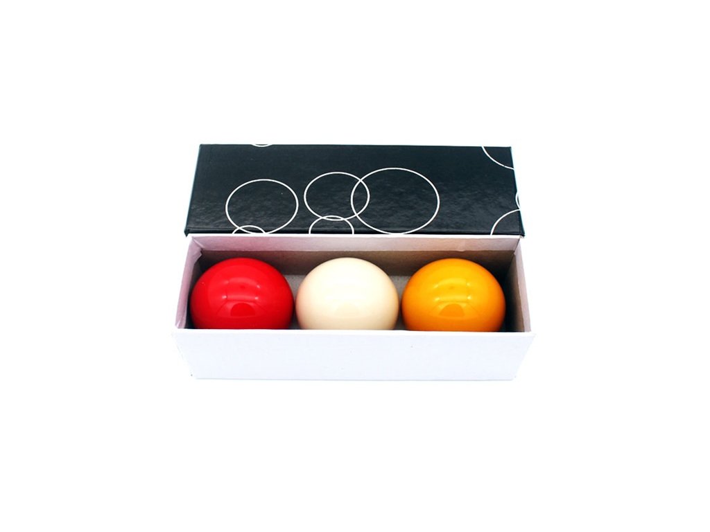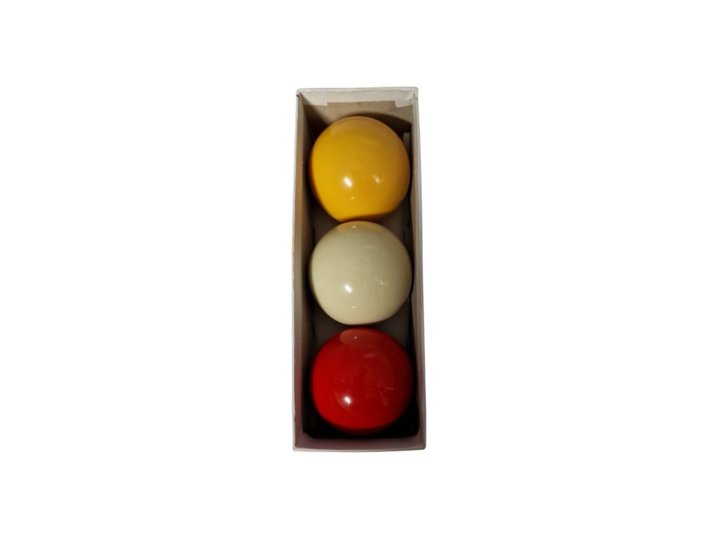 Sada obsahuje karambolové gule s priemerom 61,5 mm. Určené na klasickú hru karambolu.