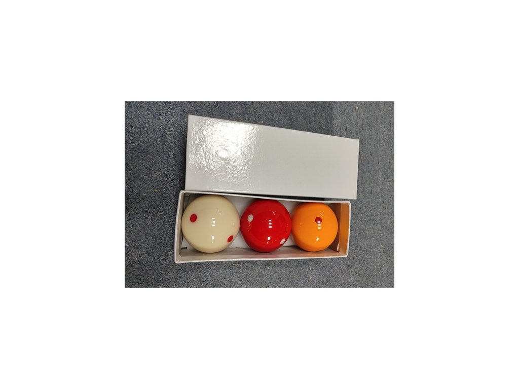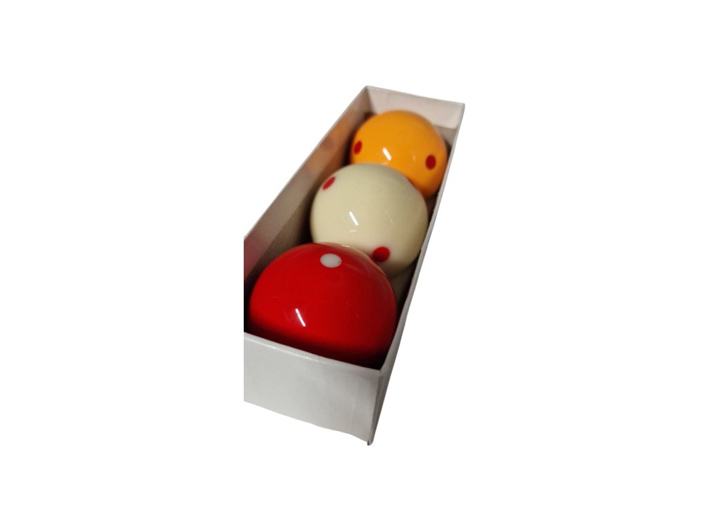 Sada obsahuje karambolové gule s priemerom 61,5 mm. Bodky na povrchu uľahčujú sledovanie rotácie pri hre karambolového biliardu.