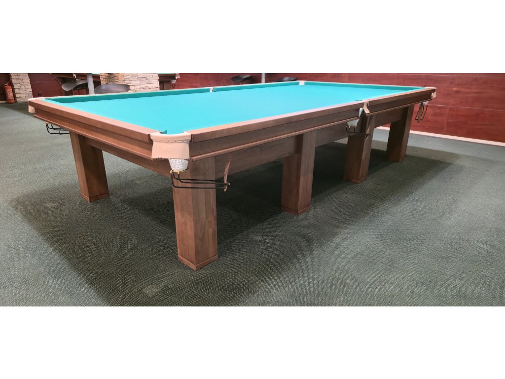 Luxusný biliardový stôl v tradičnom dizajne, ktorý vyniká remeselným spracovaním a nadčasovým štýlom. Jeho masívne nohy s precíznym zdobením a elegantným povrchom z bukového dreva dodávajú interiéru nádych elegancie. Ideálny pre milovníkov klasického štýlu, ktorí ocenia kvalitné materiály a detailné spracovanie. Stôl je vhodný do domácností, klubov aj reprezentatívnych priestorov. Farbu a povrchovú úpravu je možné prispôsobiť.