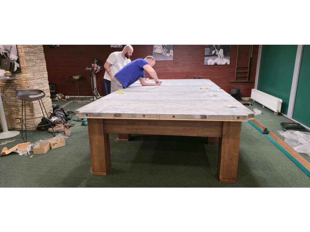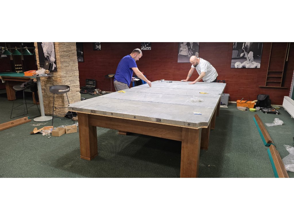 - Hrací povrch tvorí kvalitná bridlicová doska s hrúbkou minimálne 20 mm (prípadne hrubšia na požiadanie), ktorá je osadená na pevnej oceľovej zvarenej konštrukcii pre maximálnu stabilitu.