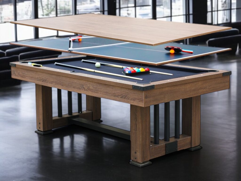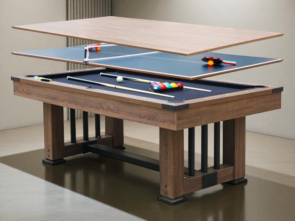 3 v 1 Multifunkčný herný stôl Fun Fusion 7ft ponúka možnosť hrať biliard, stolný tenis, alebo využívať kryciu dosku.
