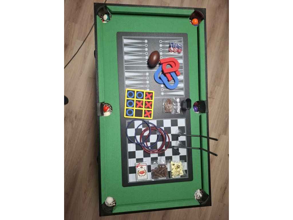15 v 1 Multifunčný herný stôl Kombi 15 ponúka až 15 hier: Biliard + Stolný tenis + Stôl na hokej + Stolný futbal +Basketbal + Baseball + Piškvorky + Šach + Dáma + Poker + Lukostreľba + atď.