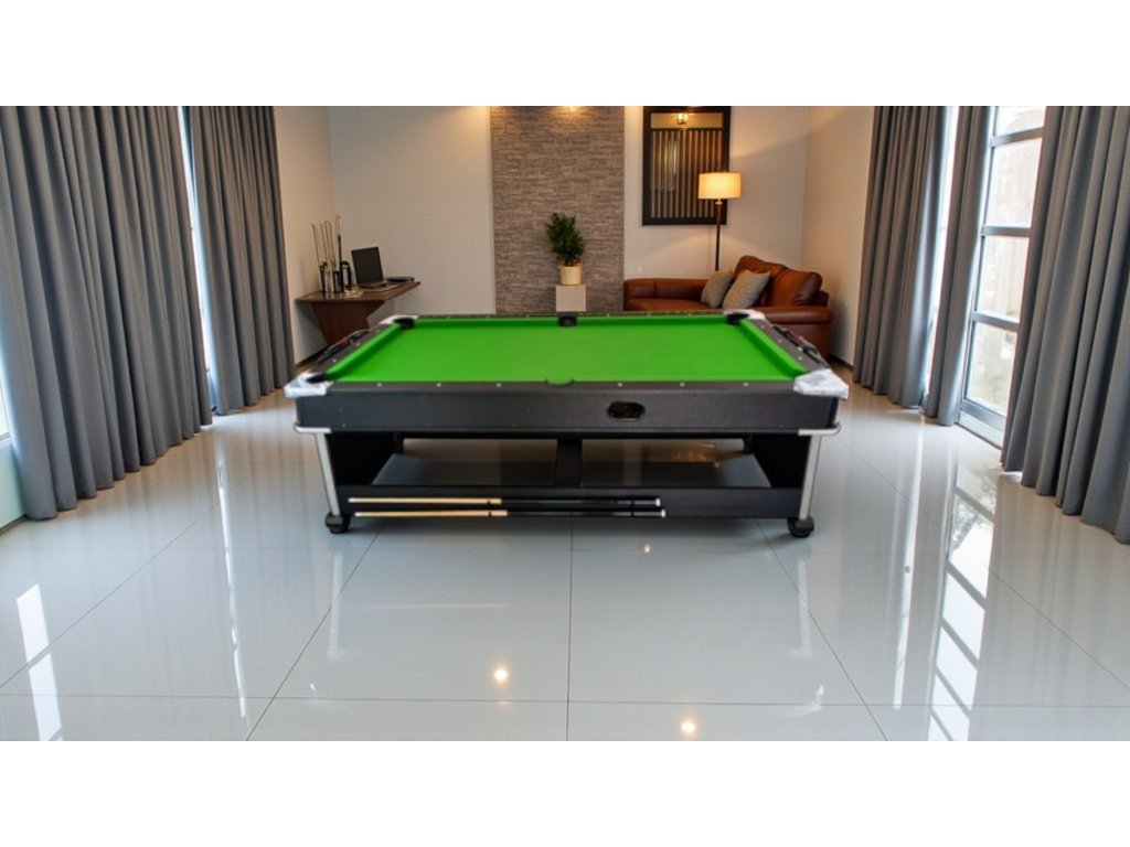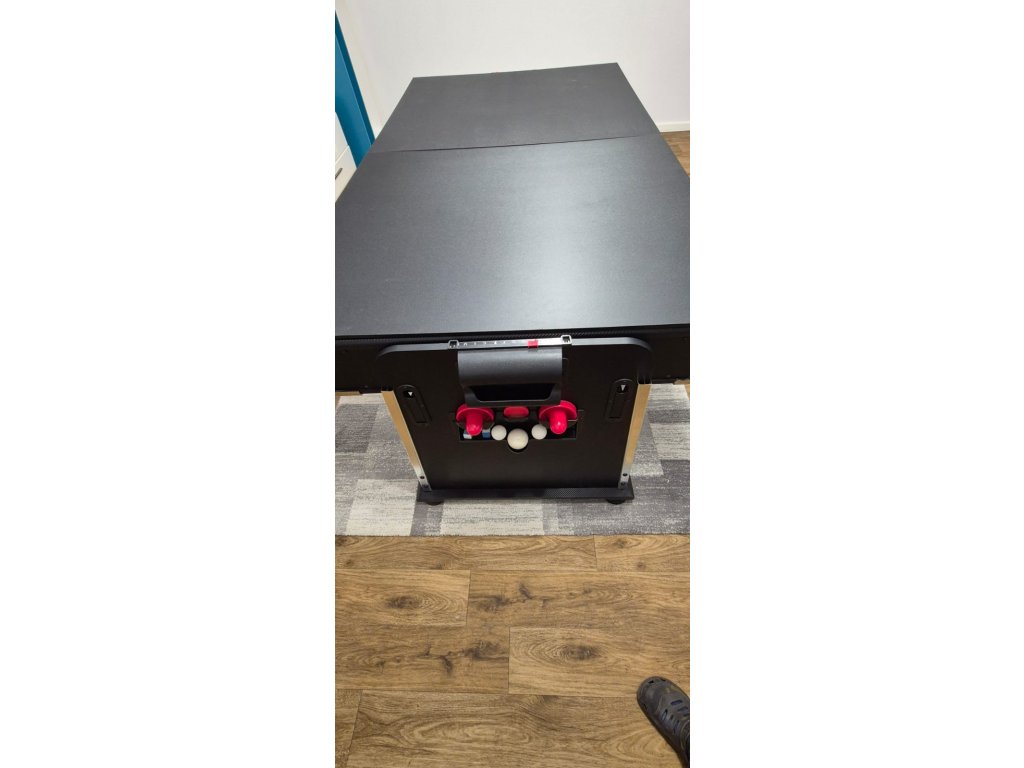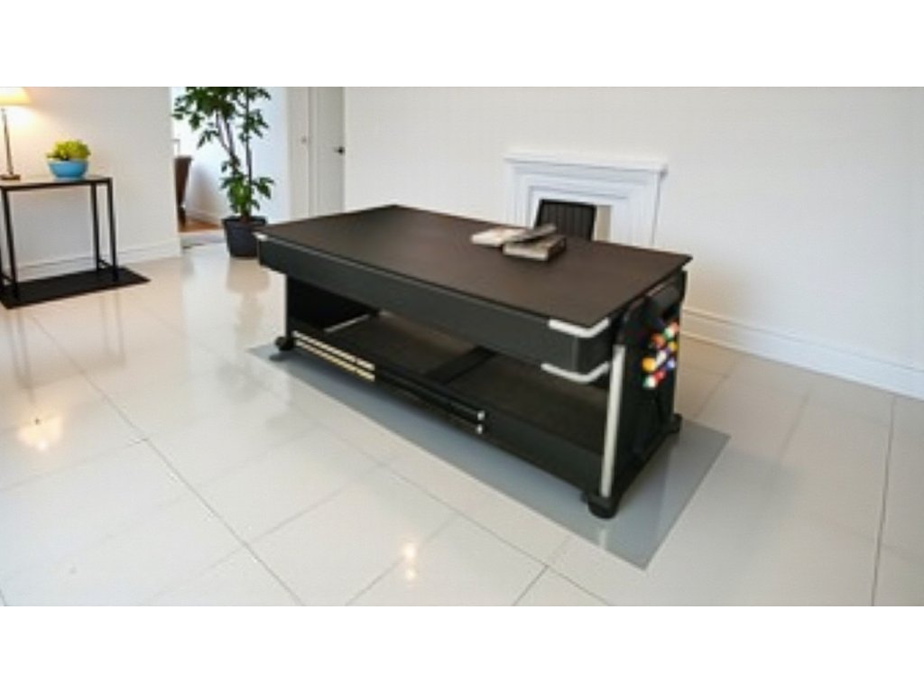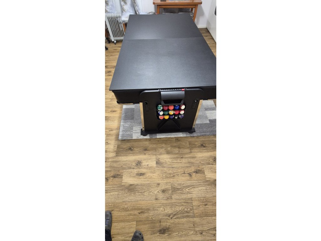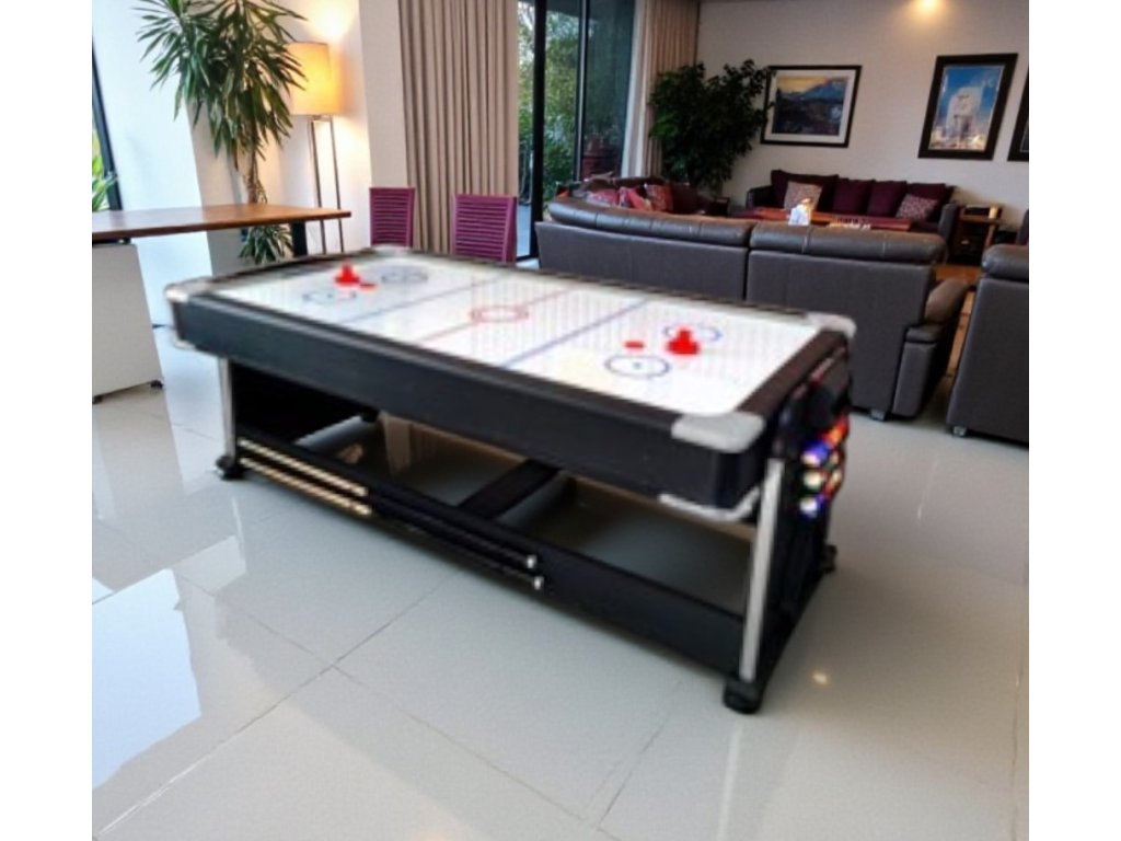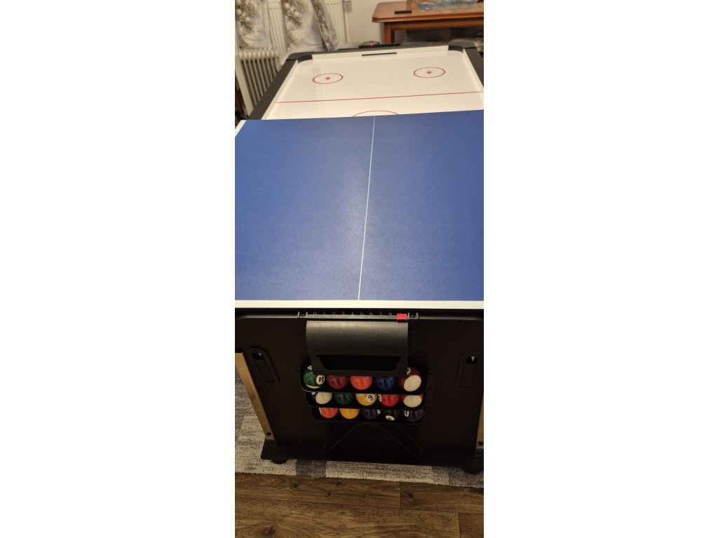 Otočný herný stôl 4 v 1 s dĺžkou 7 stôp. Stôl umožňuje nasledovné hry: biliard, stolný hokej, ping pong a okrem toho je