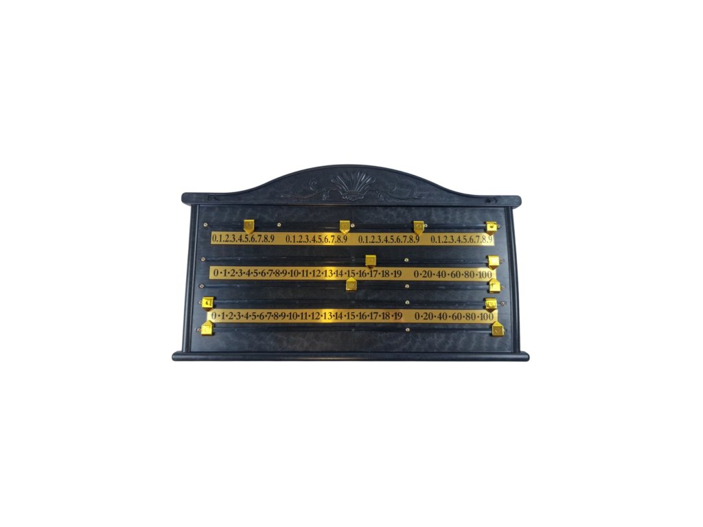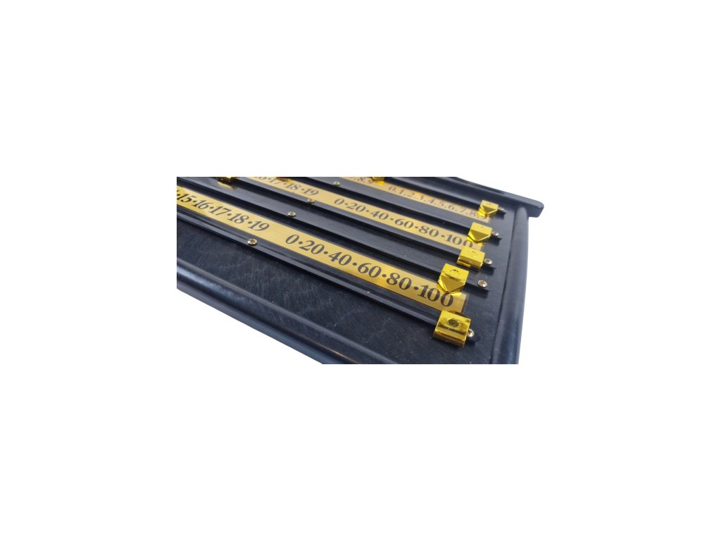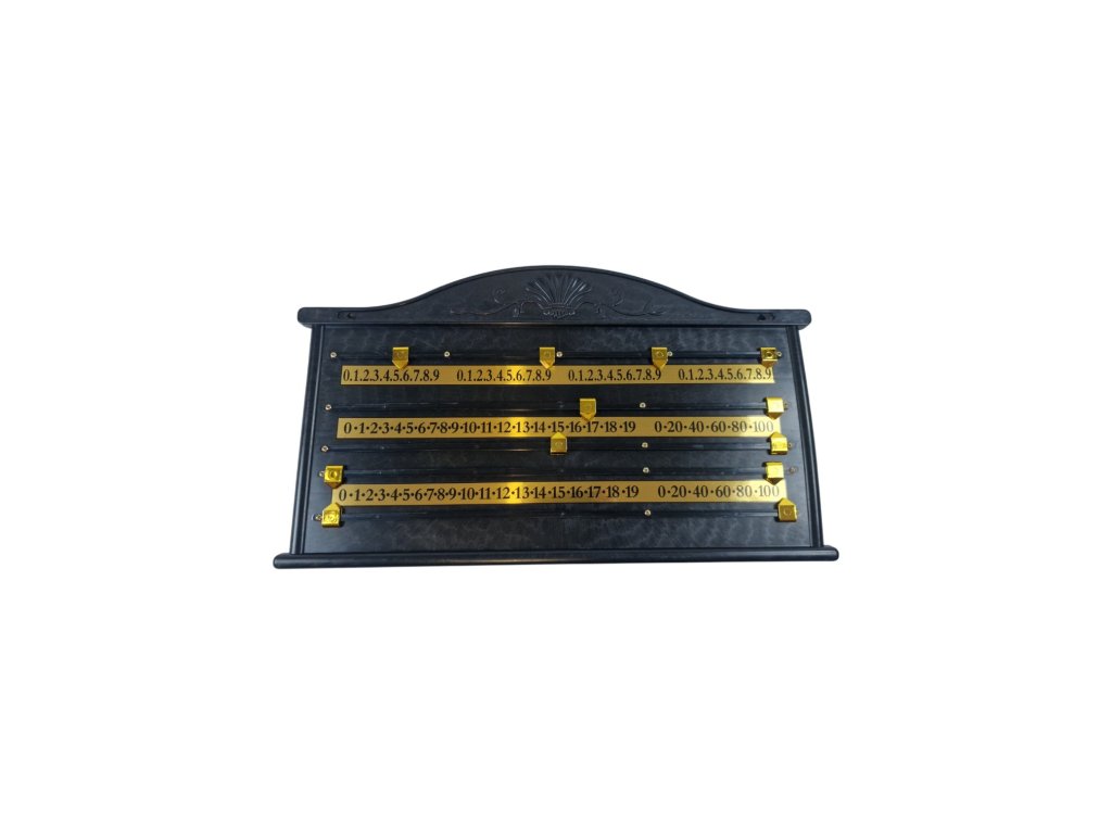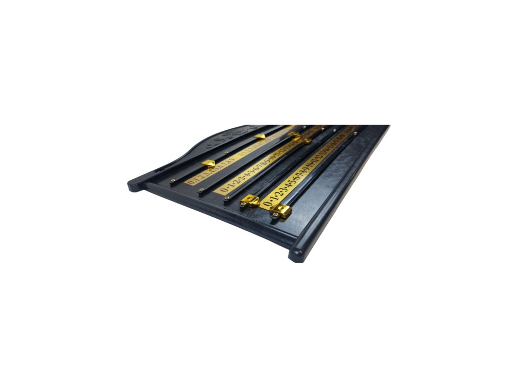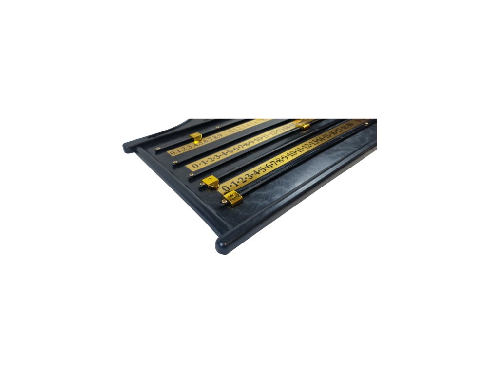 Plastové snookrové počítadlo je praktický doplnok na sledovanie skóre počas hry. Vyrobené je z pevného plastu, ktorý zaručuje nízku hmotnosť a jednoduchú montáž na stenu. Zlato označené lišty a posuvné ukazovatele umožňujú prehľadné a presné nastavovanie bodov. Vďaka svojmu modernému vzhľadu je vhodné pre herne, kluby aj domáce biliardové priestory.