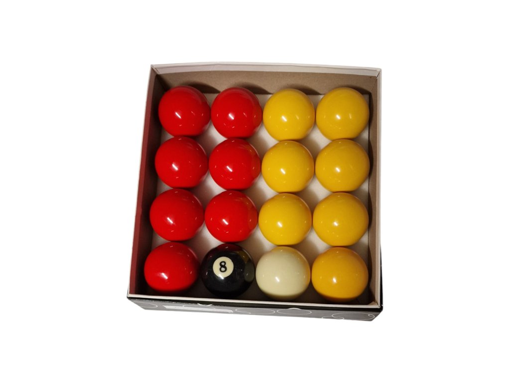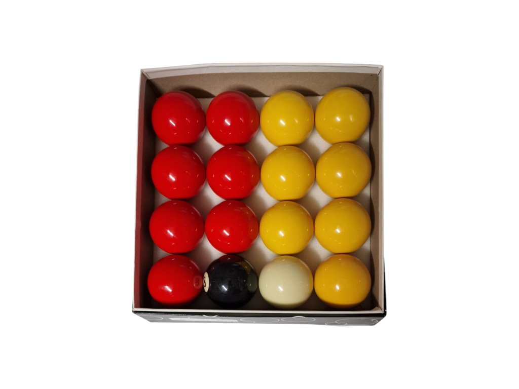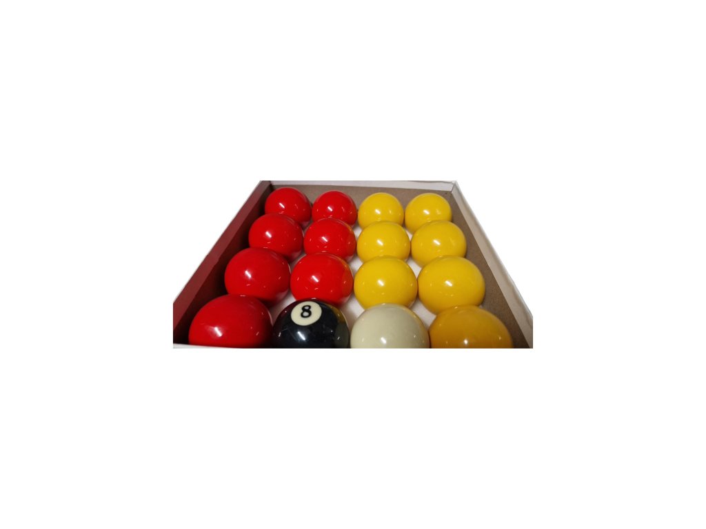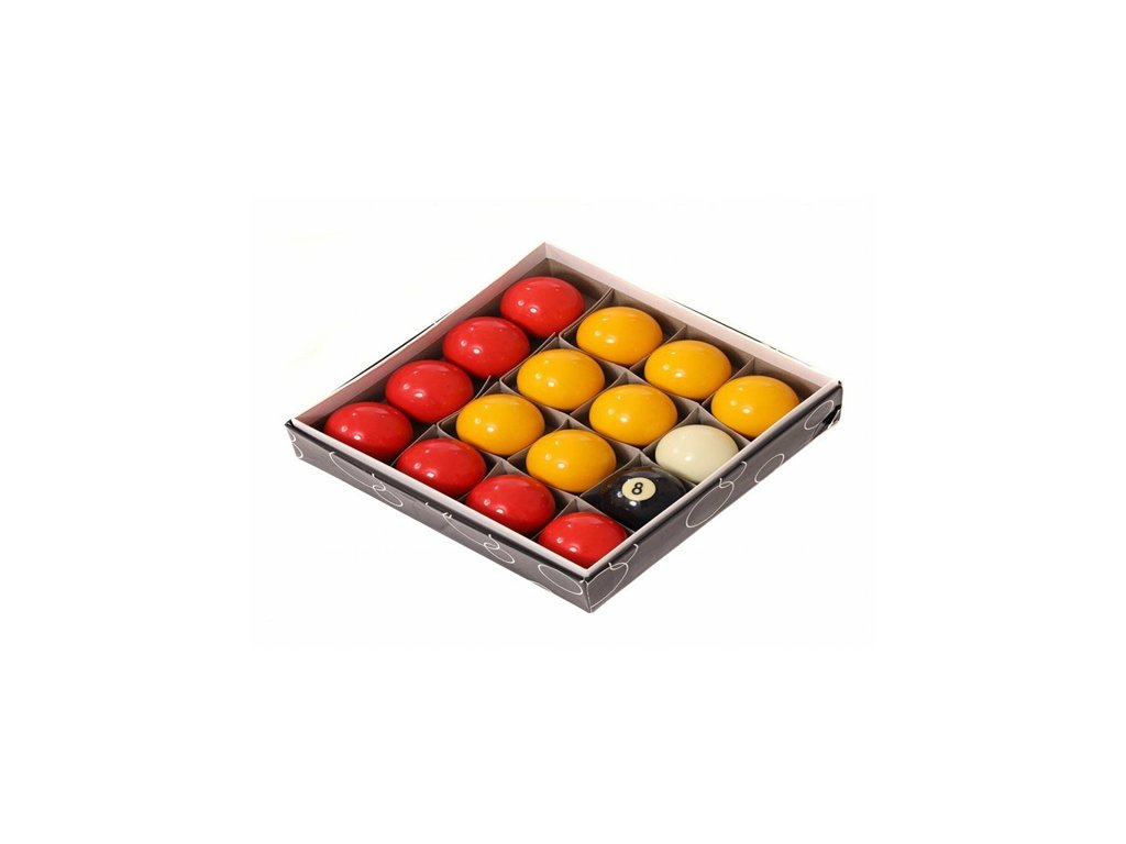 Sada obsahuje 7 žltých, 7 červených, 1 čiernu a 1 bielu guľu s priemerom 57,2 mm. Vhodná na hru tzv. "reds and yellows" biliardu.