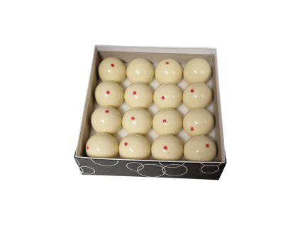Sada biliardových bielych gúľ s červenou značkou, priemer 57,2 mm