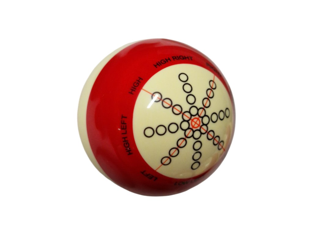 Červeno-biela tréningová guľa na biliard s priemerom 57,2 mm je určená na zlepšovanie kontroly úderov a techniky hry. Značky na guli pomáhajú sledovať rotáciu a presnosť úderov. Vhodná pre začiatočníkov a aj tých, ktorí sa chcú zdokonaľovať v hre.