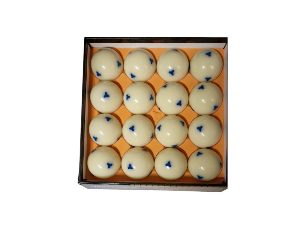 Sada obsahuje tréningové gule s priemerom 57,2 mm. Modré trojuholníky pomáhajú sledovať rotáciu gúľ a zlepšovať presnosť úderov pri hre.